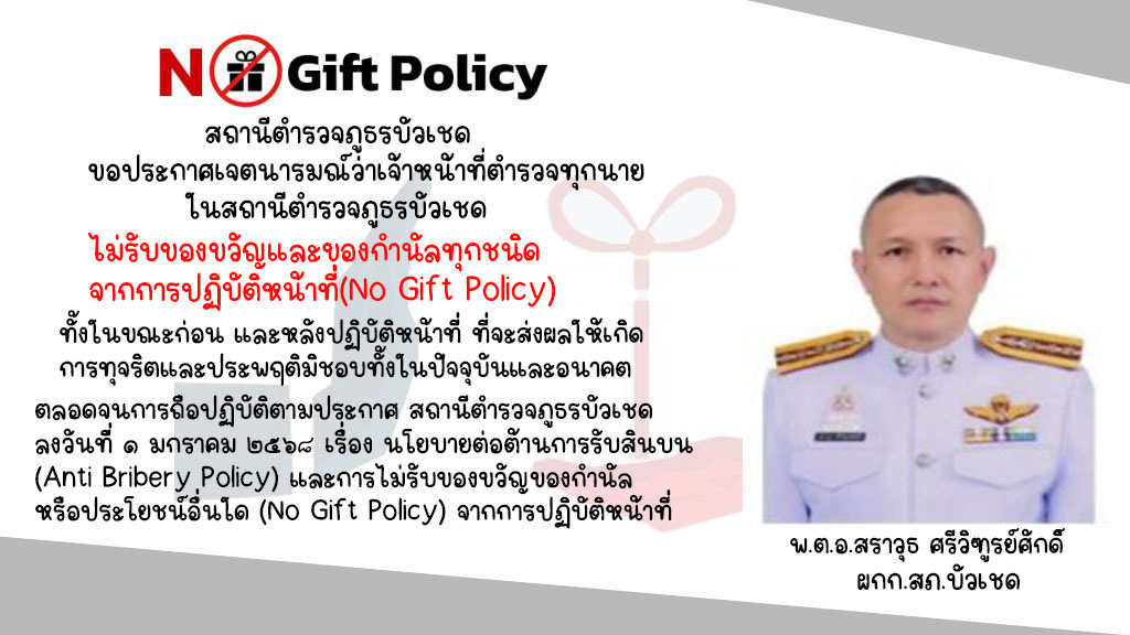 นโยบายต่อต้านการรับสินบน(Anti-Bribery Policy)และการไม่รับของขวัญของกำนัลหรือประโยชน์อื่นใด(No Gift Policy)จากการปฏิบัติหน้าที่ประจำปีงบประมาณ พ.ศ.2568