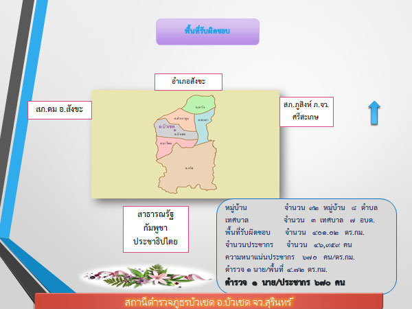 เทศบาล : จำนวน 3เทศบาล 8อบต. ความหนาแน่นประชากร : 670 คน/ตร.กม.