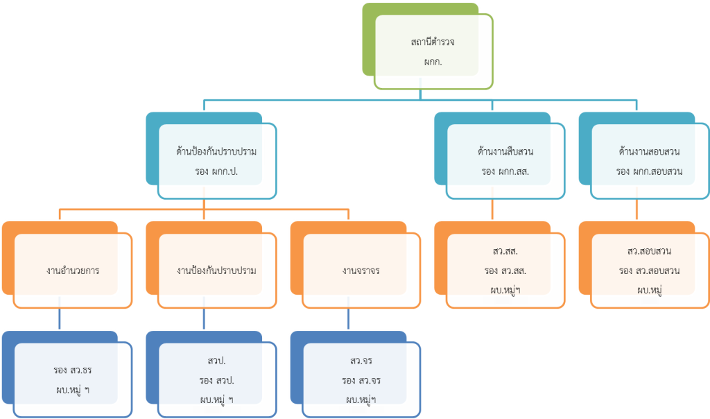 หมายเหตุ : 1) รองผู้กำกับการป้องกันปราบปราม เป็นหัวหน้างานอำนวยการ และงานป้องกันปราบปราม